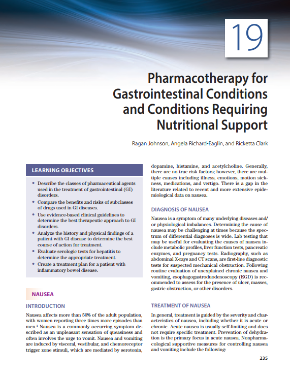 Featuring an applied therapeutic approach to major disorders and their pharmacologic treatment, the book examines how medications act on the body and visa versa, while teaching the rationale for using specific therapeutic agents or drug classes. Each chapter includes case studies that apply the concepts discussed, relevant diagnostic studies, applicable guidelines, genomics, and important lifespan considerations. Of special interest is a chapter on pharmacogenetics explaining the basic principles underlying our current understanding of genetic variations in response to pharmacotherapy and adverse drug reactions. Easily digestible chapters include objectives and review questions. Ancillary resources include an instructor manual with learning objectives, chapter summaries, and case studies; chapter PowerPoint slides; test bank; and image bank.