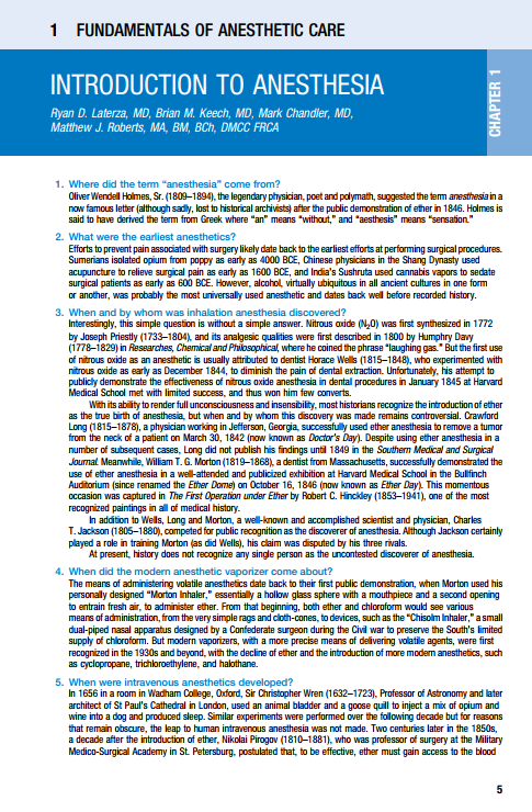 New chapters on Electrocardiogram Interpretation, Cardiac Physiology, Vasoactive Agents, Volume Assessment, Blood Pressure Disturbances, Mechanical Ventilation Strategies, Perioperative Point-of-Care Ultrasound and Echocardiography, Neuraxial Techniques, Peripheral Nerve and Trunk Blocks, Patient Safety, and Medical Ethics.